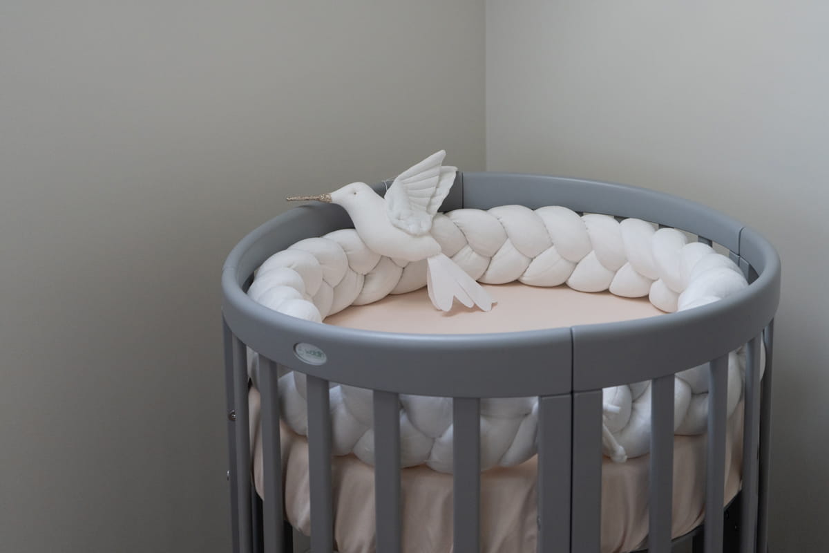 Prześcieradło skrojone pod mały materac owalnego łóżeczka Waldin 7w1 . Produkt projektowany, uszyty w Polsce, z polskich materiałów. Prześcieradło jest przyjemne w dotyku i miękkie.