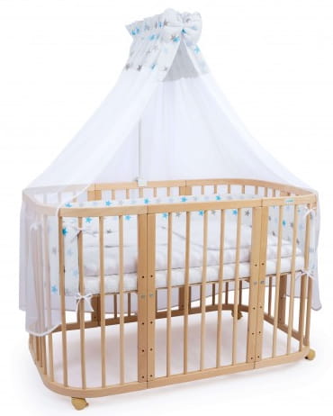 Waldin - wyposażenie, tekstylia do łóżeczka 7w1 | Niebieskie Gwiazdki