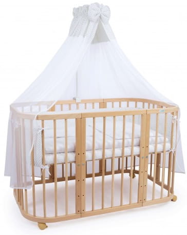Kompletny zestaw tekstyliów do łóżeczka 7w1 Waldin. Piękne wzory, staranne szycie i wysoka jakość materiałów (100% bawełna) pozwala stworzyć prawdziwe łoże dla małej królewny lub małego księcia.