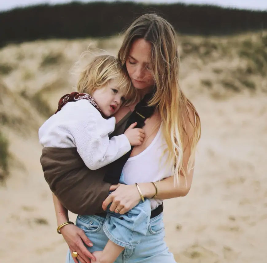 Nosidło wspomagające Wildride, które zakłada się jak torbę typu nerka. W ten sposób nosidło pełni funkcję poduszki, na której może usiąść dziecko. Ciężar malucha nie przechodzi na ręce rodzica, zamiast tego rozkłada się na nosidle. Wygodne noszenie na biodrze pozwala swobodnie spacerować - dzięki temu produktowi możesz nosić dziecko bez większego wysiłku.