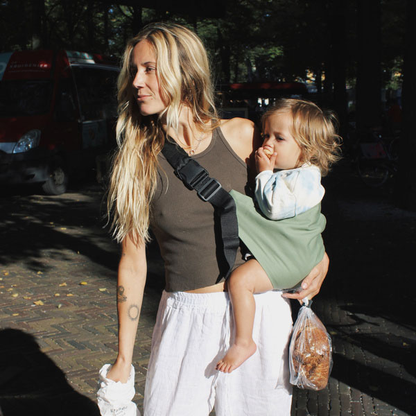 Nosidło wspomagające Wildride, które zakłada się jak torbę typu nerka. W ten sposób nosidło pełni funkcję poduszki, na której może usiąść dziecko. Ciężar malucha nie przechodzi na ręce rodzica, zamiast tego rozkłada się na nosidle. Wygodne noszenie na biodrze pozwala swobodnie spacerować - dzięki temu produktowi możesz nosić dziecko bez większego wysiłku.