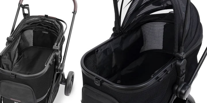 Wózek dla psa Wonderfold posiada wewnętrzną smycz, którą możesz zapiąć swojego pupila. Dzięki temu czworonożny pasażer będzie mógł bezpiecznie podróżować. Wnętrze wózka posiada wyjmowaną podkładkę, którą można łatwo wyprać.