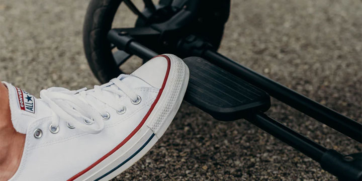 W celu bezpiecznego podróżowania wózek Wonderfold W2 Elite został wyposażony w hamulec, który umożliwi unieruchomienie pojazdu na czas kiedy trzeba włożyć lub wyjąć dzieci ze środka.
