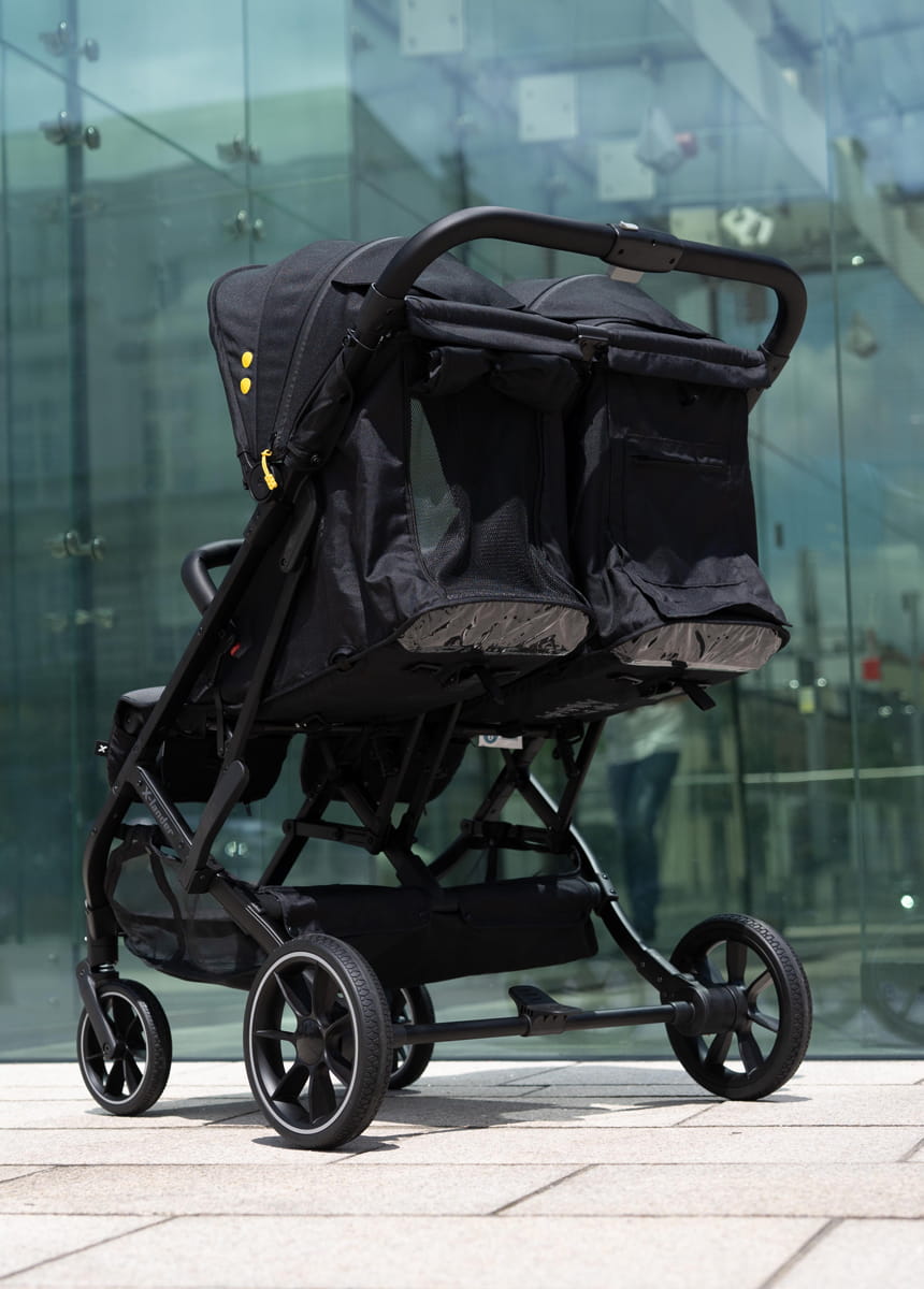 To mała, zwinna spacerówka dla bliźniąt lub rodzeństwa rok po roku. Największą zaletą jest jej waga, cały wózek waży 13,4 kg. Prowadzenie wózka jest płynne i bardzo lekkie, dlatego nawet przy dwójce dzieci nie będzie stanowiło wyzwania.