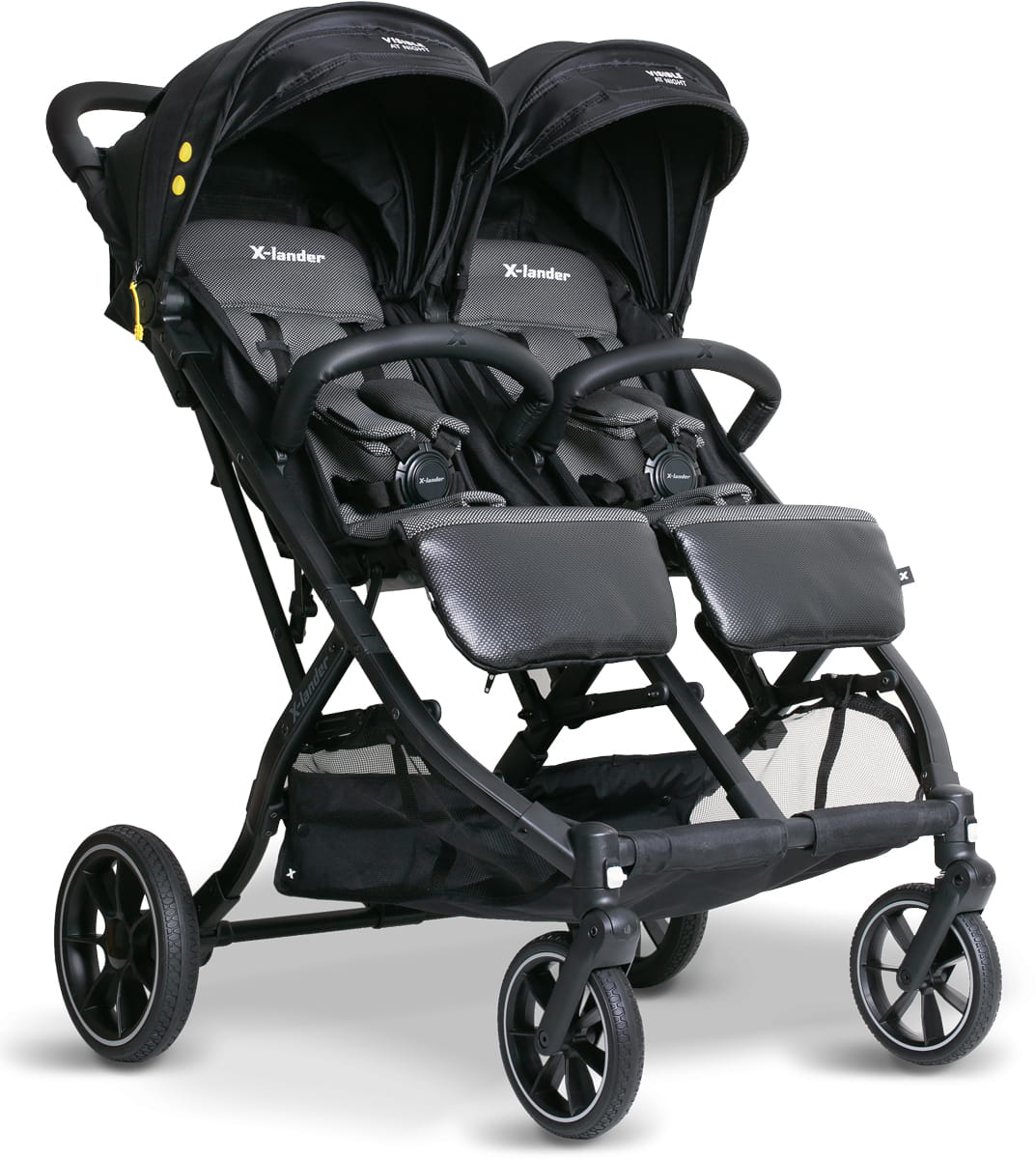 X-lander X-Double - bliźniaczy wózek wielofunkcyjny, zestaw 2w1 | Cool Black