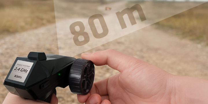 System zdalnego sterowania Xblitz EXPLORER działa nawet w odległości 80 metrów, dzięki czemu dziecko może bawić się na naprawdę dużej przestrzeni. Nie ma potrzeby biegać za autem - można kierować nim z daleka, testując różne trasy i obserwując pojazd z nowej, ciekawszej perspektywy.