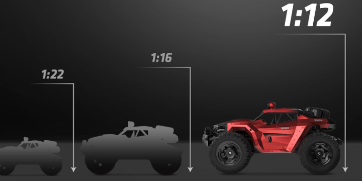 Xblitz EXPLORER wykonany jest w skali 1:12, dzięki czemu wyróżnia się większym rozmiarem niż wiele standardowych samochodów RC. Taka wielkość sprawia, że pojazd jest dobrze widoczny podczas jazdy, zwłaszcza na większych, otwartych przestrzeniach.