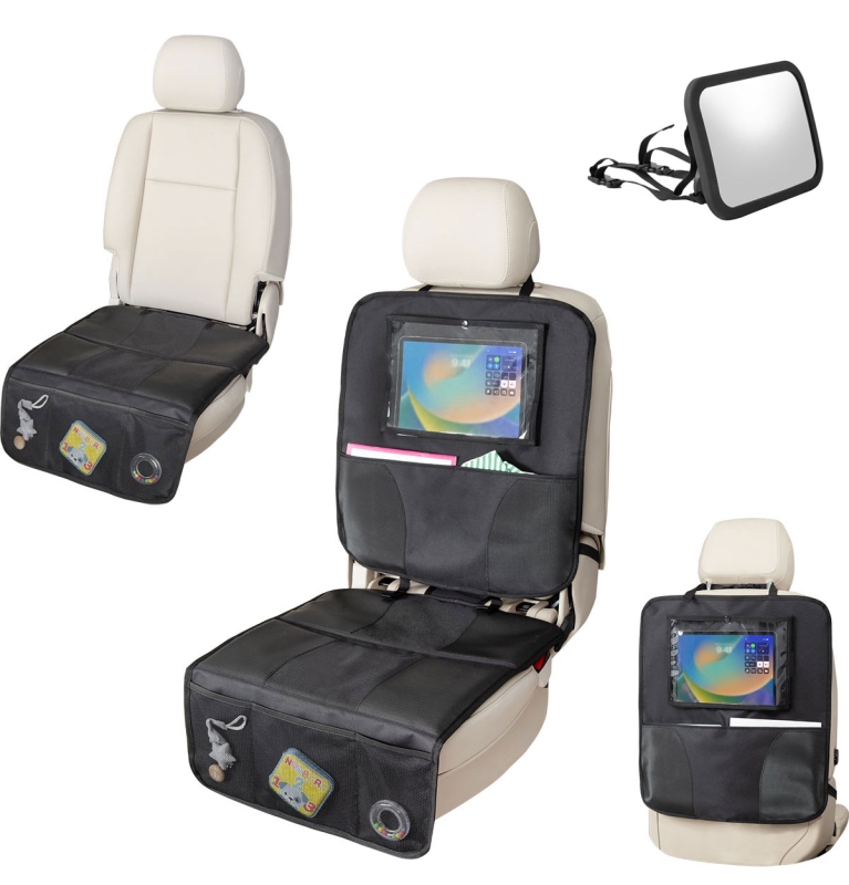 Xland MULTI SET - mata ochronna do samochodu, organizer + lusterko do obserwacji dziecka