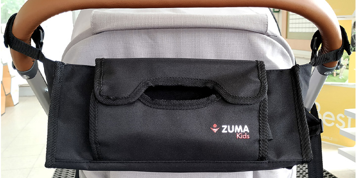 Dzięki uniwersalnemu zapięciu organizer można zamocować niemal na każdym wózku.