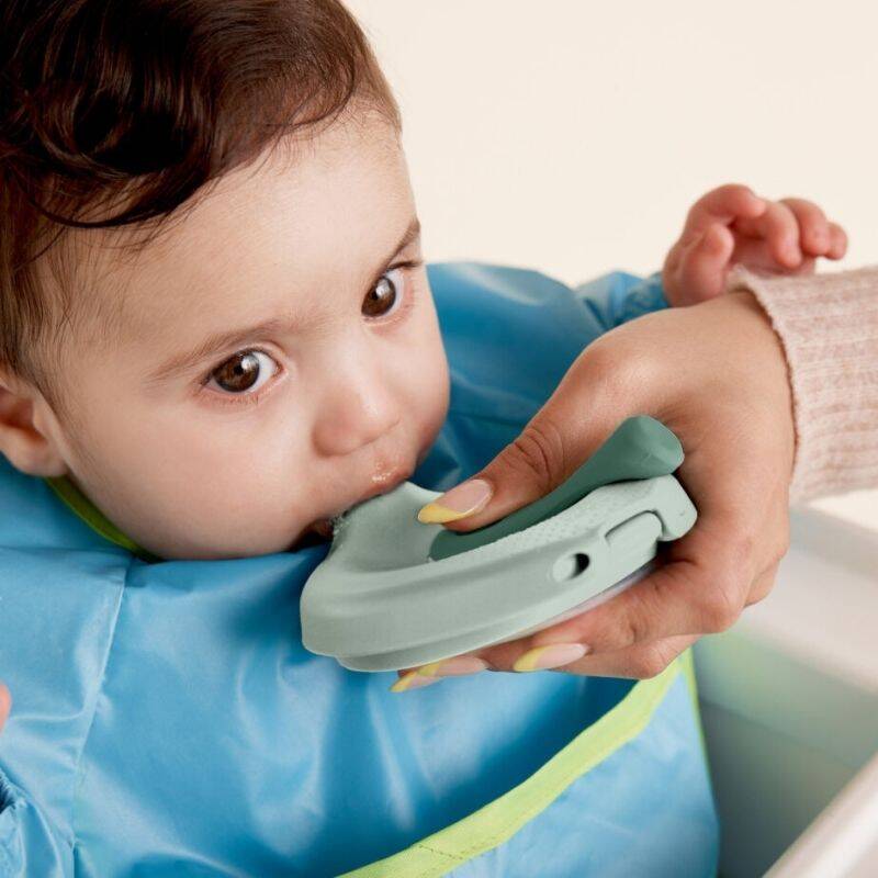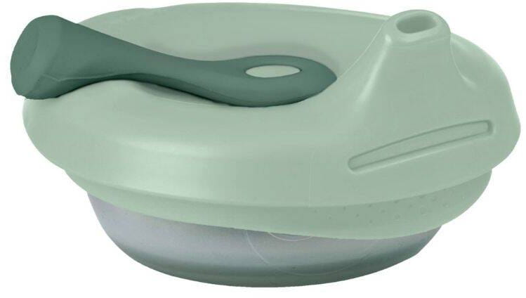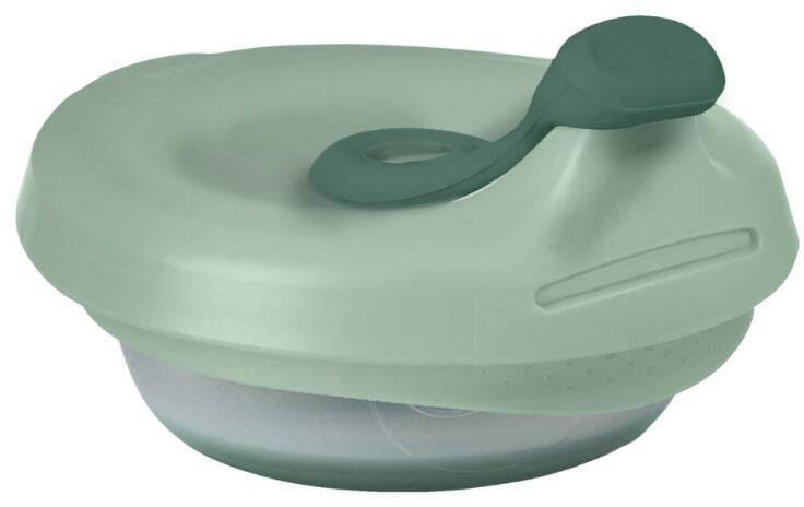 Materiały: PP (pokrywka) i silikon (miseczka) bez BPA Wiek dziecka: 4 mies.+ Pojemność miseczki: 110 ml Miseczkę można myć w zmywarce (górny kosz) i sterylizować w sterylizatorze (silikonowa miseczka do 200˚ C i pokrywka PP do 100˚ C). Zawsze należy sterylizować zgodnie z zaleceniami producenta. Można również używać w kuchence mikrofalowej, jednak należy upewnić się, że pokrywka jest otwarta podczas podgrzewania zawartości. Zaleca się podgrzewanie w odstępach 30 sekund i dokładne wymieszanie. Należy sprawdzić temperaturę żywności przed podaniem.