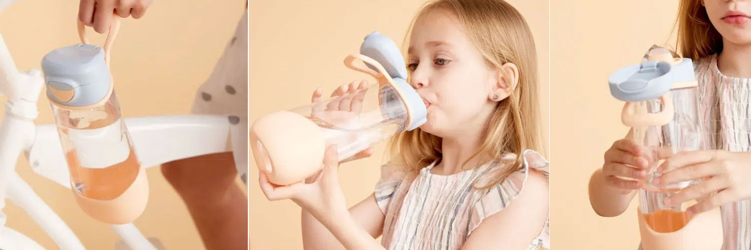 Ergonomiczny, trójkątny kształt butelki ułatwia utrzymanie jej w dłoni. Jej skład jest wolny od BPA, PVC i ftalanów.