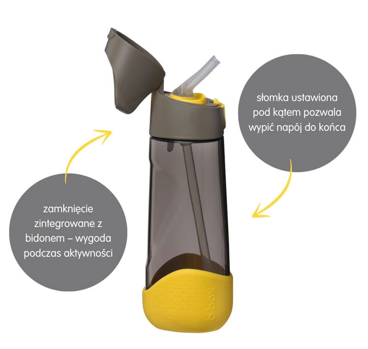 - Specjalna silikonowa słomka ustawiona pod kątem, umożliwiająca wypicie napoju do ostatniej kropli.